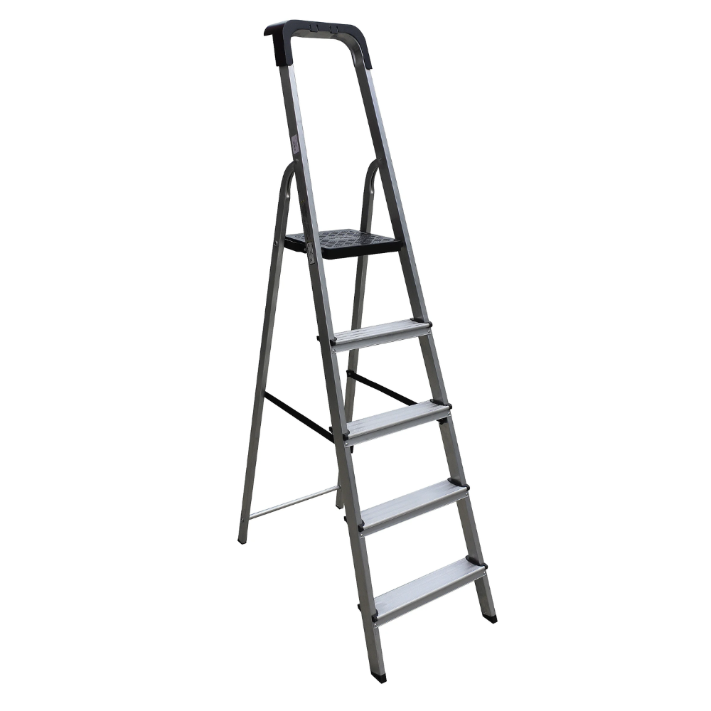 Possui estrutura reforçada, suporta até 150 kg e oferece mais conforto com degraus e plataforma mais largos.