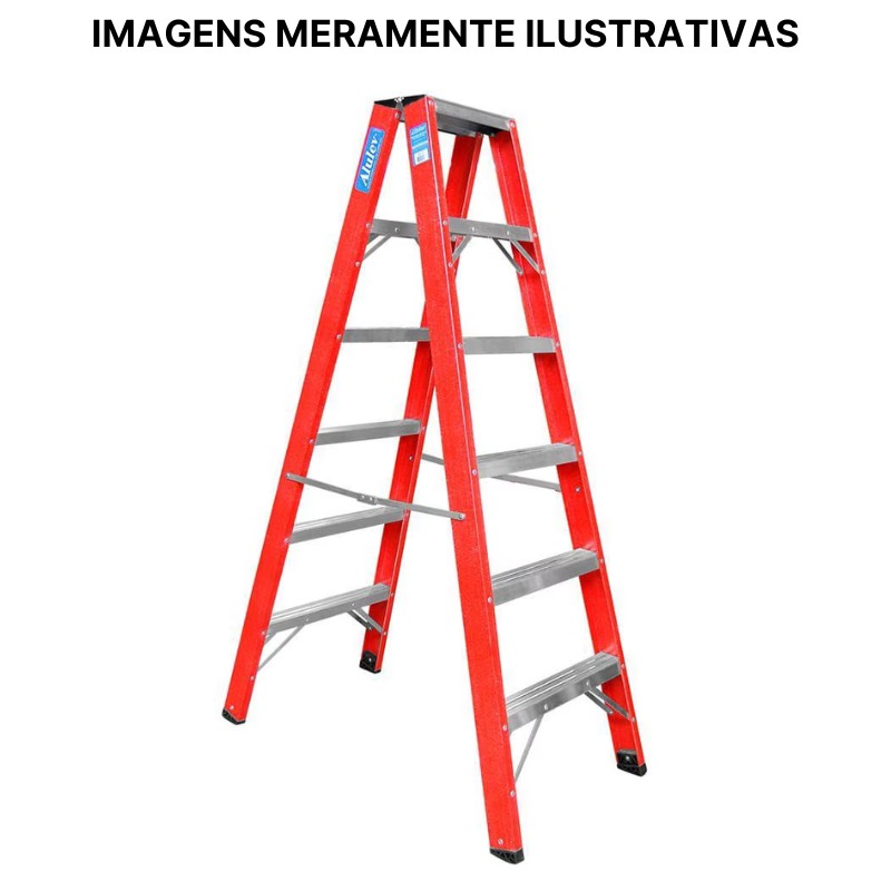 Conteúdo da embalagem: 1 Escada de Fibra Pintor Tesoura Duplo Acesso 04 Degraus - 1,20m Alulev